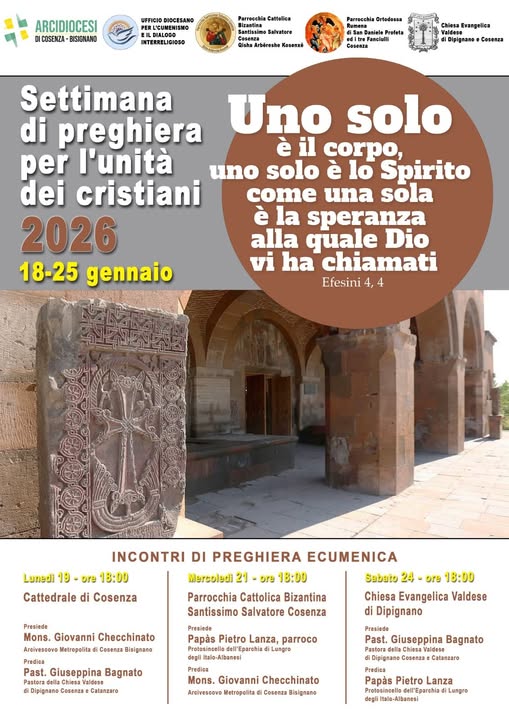 Da Domenica 18 gennaio fino a Domenica 25 gennaio siamo invitati a pregare per l’unità di tutti i cristiani. Di seguito il volantino con le iniziative per celebrare questo appuntamento annuale che ci fa misurare con il desiderio del Signore Gesù: “che siano uno”.
