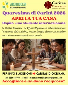 La Caritas diocesana propone il progetto Apri la tua casa rivolto alle famiglie che desiderano e possono accogliere uno/ studente/studentessa universitario/a non italiano/a; si tratta di giovani di cui si fa garante la stessa Caritas diocesana: tanti ragazzi anche motivati e in gamba non possono trovare accoglienza a causa del numero scarso di alloggi a disposizione. Per informazioni visualizzare la seguente locandina